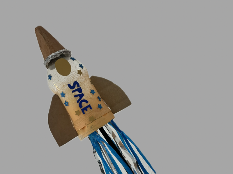 Til denne workshop kan du bygge din helt egen rumraket, og vi skal selvfølgelig bruge alle de materialer, der er blevet tilovers; plastflasker uden pant, æggebakker, slidte Ikeaposer og flyttekasser, gammelt julestads og VHS-bånd.